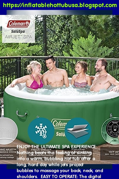 ENJOY THE ULTIMATE SPA EXPERIENCE: Nothing beats the feeling of sinking into a warm, bubbling hot tub after a long, hard day while jets project bubbles to massage your back, neck, and shoulders. EASY TO OPERATE: The digital control panel lets you dictate the water temperature (up to 104 degrees Fahrenheit) and pressure of the jets. A power saving timer can even automate the temperature of the spa up to 72 hours prior to save energy and money. BENEFITS OF A PORTABLE HOT TUB: With lift handles, the spa can be moved around with ease. This spa deflates compactly for optimal storage and transportation purposes.